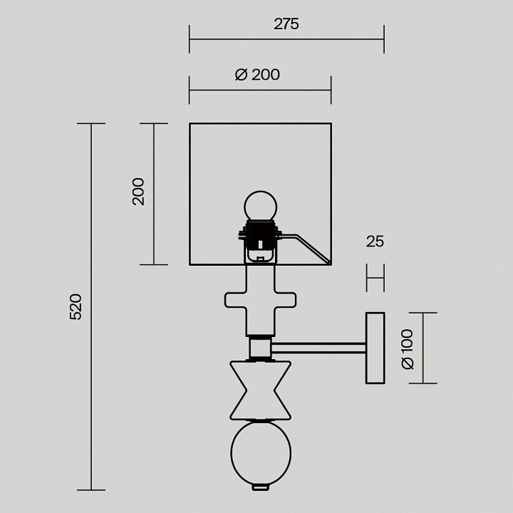 Общая форма для Бра и Настенные светильников с любым количеством рожков: Общий плафон / абажур