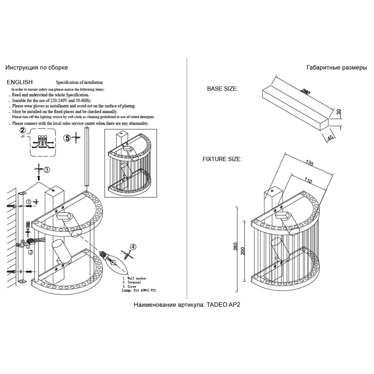 Тип светильника: настенный светильник