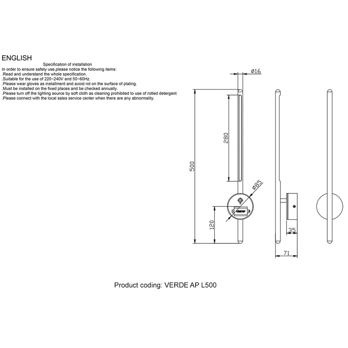 Артикул: VERDE AP L500 BLACK
