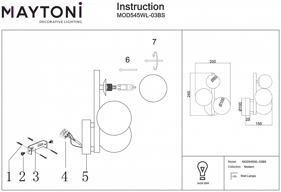 Главная Настенные светильники Бра Maytoni Dallas MOD545WL-03BS
