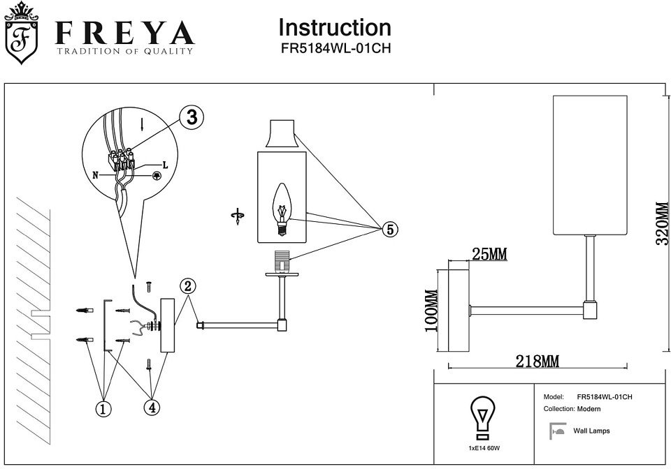 Станьте первым, кто оставит отзыв о товаре Бра Freya Agnes FR5184WL-01CH.