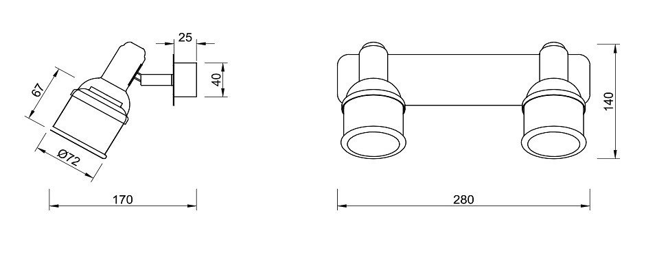 Общая форма для Настенно-потолочных светильников: Несколько спотов на перекладине