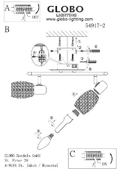 Станьте первым, кто оставит отзыв о товаре Настенный светильник Globo Cyclone 54917-2.