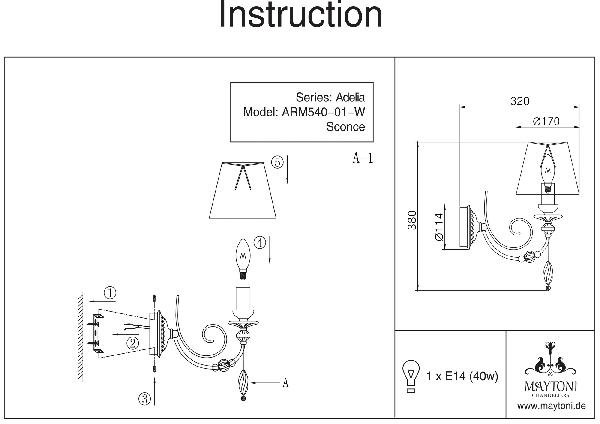 Станьте первым, кто оставит отзыв о товаре Бра Maytoni Adelia ARM540-01-W.
