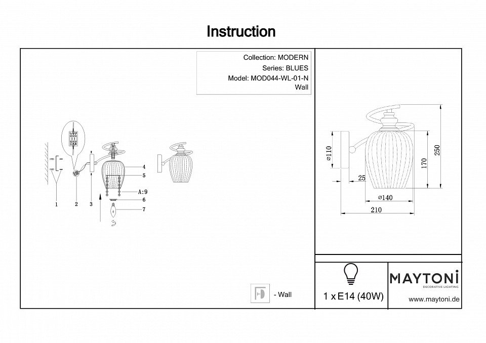 Станьте первым, кто оставит отзыв о товаре Бра Maytoni Blues MOD044-WL-01-N.