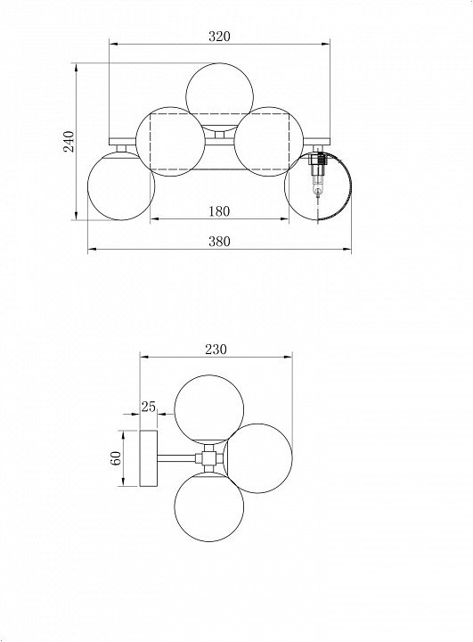 Общая форма для Бра и Настенные светильников с любым количеством рожков: Плафоны на каждую лампочку