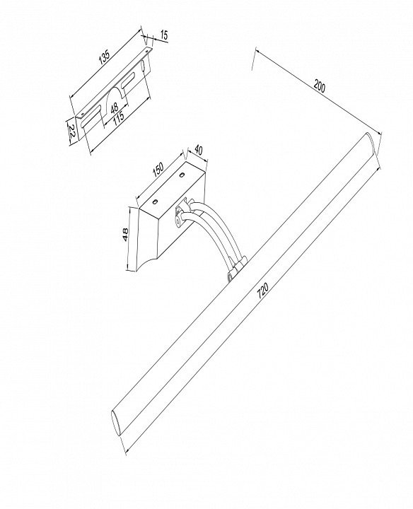 Общая форма для Подсветок для картин: Из пластины на тонкой «ножке»