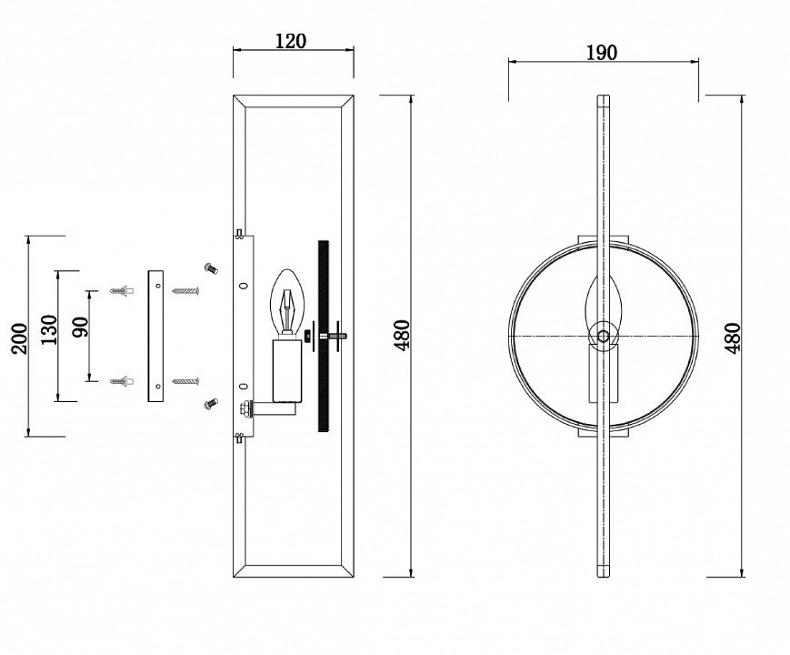 Общая форма для Бра и Настенные светильников с любым количеством рожков: Без плафонов / свечи
