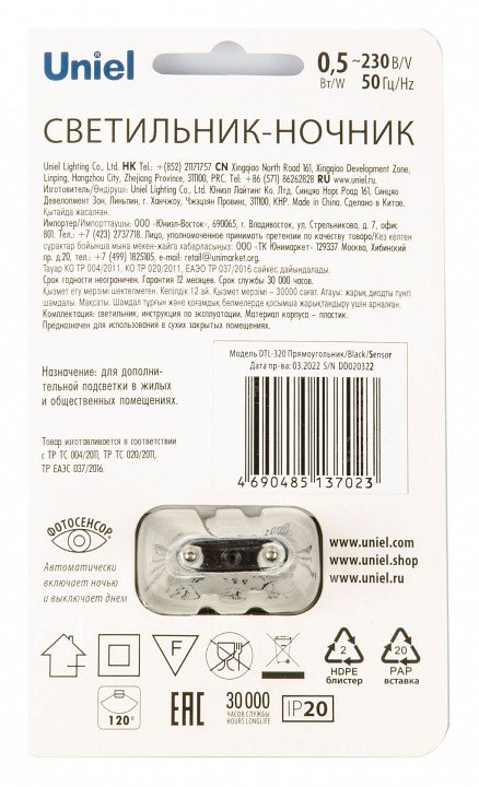 Главная Настенные светильники Ночник Uniel DTL-320 UL-00007222