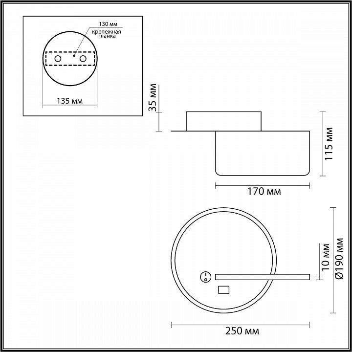 Наличие выключателя, диммера или пульта ДУ: выключатель