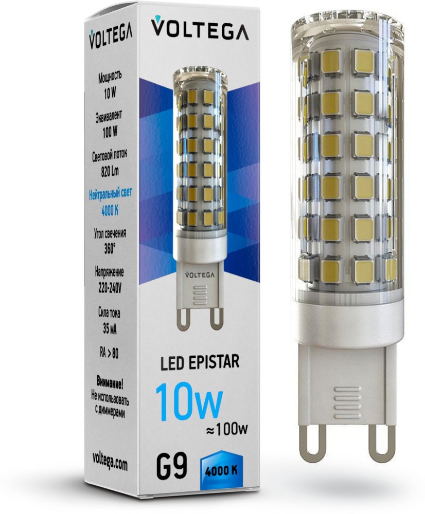 Лампа светодиодная Voltega G9 10W 4000К прозрачная VG9-K1G9cold10W 7039