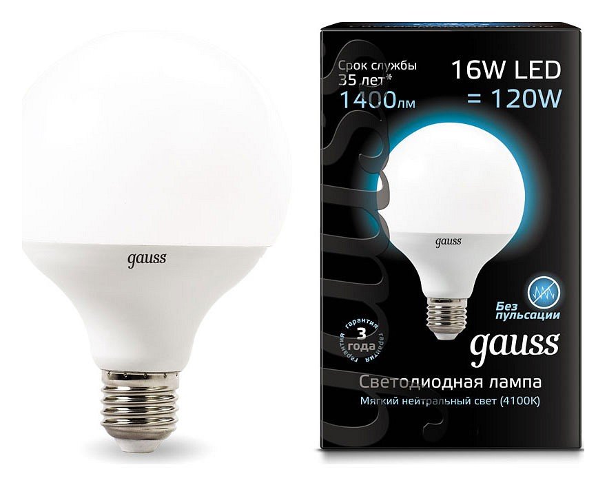 Станьте первым, кто оставит отзыв о товаре Лампа светодиодная Gauss E27 16W 4100K матовая 105102216.