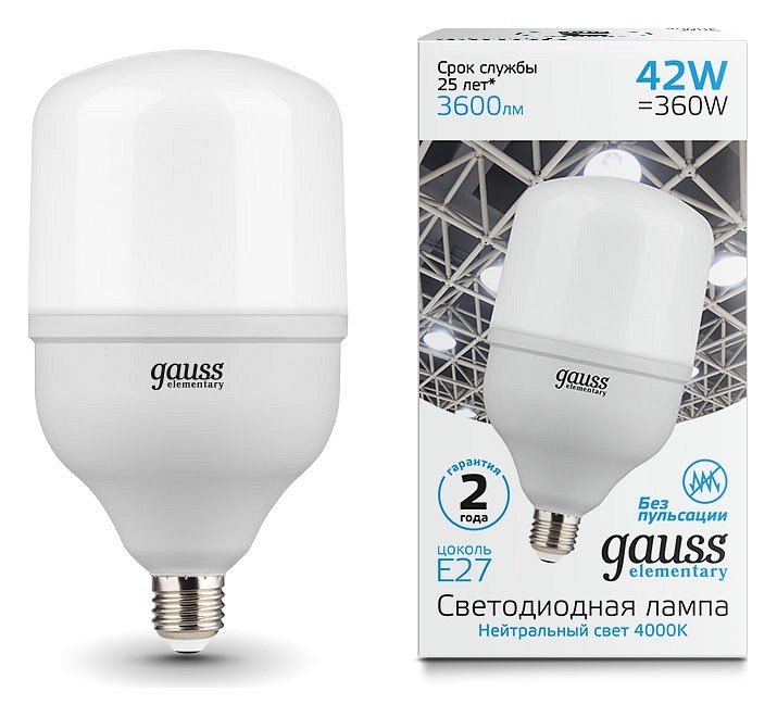 Лампа светодиодная Gauss E27 42W 4000K матовая 63224