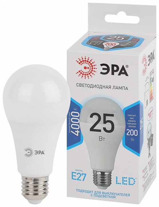 Главная Лампочки Лампа светодиодная ЭРА E27 25W 4000K матовая LED A65-25W-840-E27