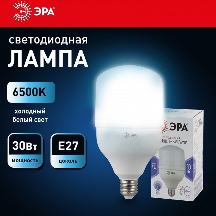 Главная Лампочки Лампа светодиодная ЭРА E27 30W 6500K матовая LED POWER T100-30W-6500-E27