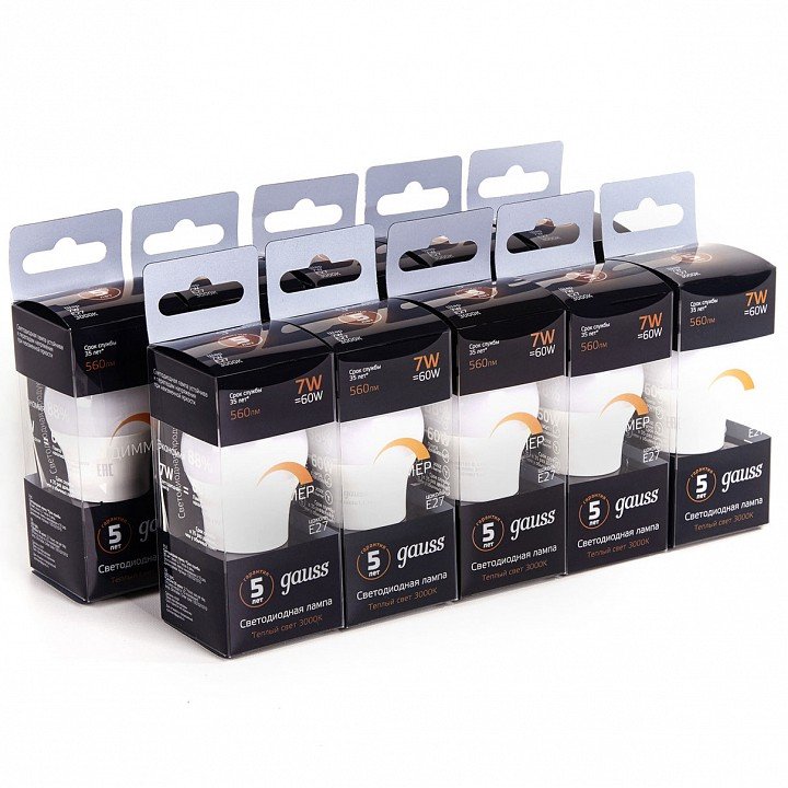 Лампа светодиодная Gauss диммируемая E27 7W 3000K матовая 105102107-D