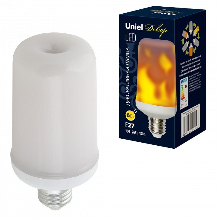 Лампа светодиодная Uniel декоративная (UL-00003360) E27 6W матовая LED-L60-6W/FLAME/E27/FR PLD01WH
