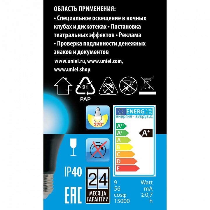 Артикул: LED-A60-9W/UVAD/E27/FR PLZ07BK