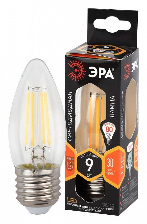 Лампа светодиодная ЭРА E27 9W 2700K прозрачная F-LED B35-9w-827-E27 Б0046993