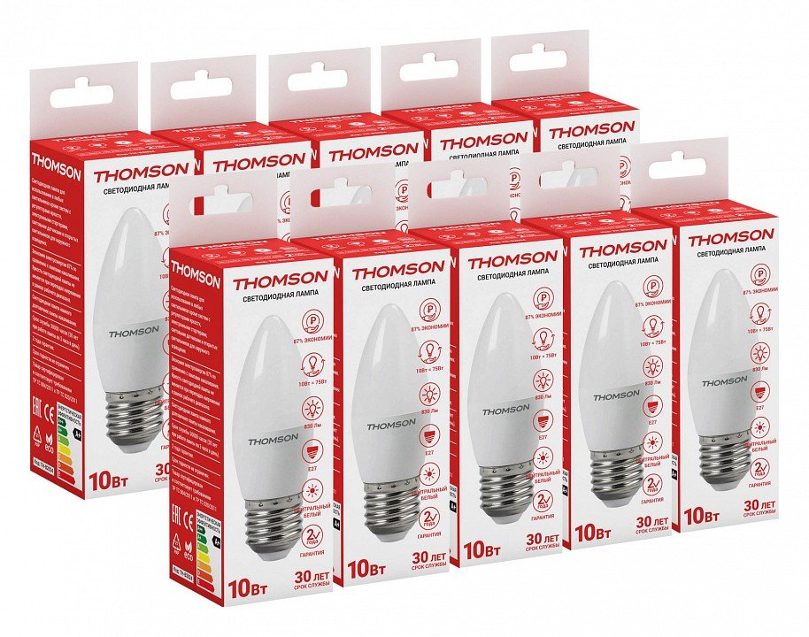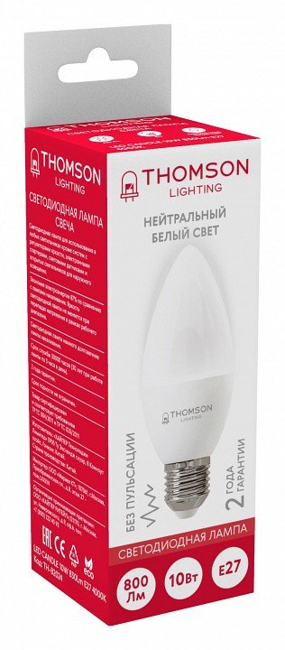 Станьте первым, кто оставит отзыв о товаре Лампа светодиодная Thomson E27 10W 4000K свеча матовая TH-B2024.