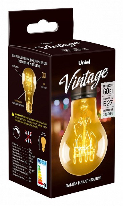 Главная Лампочки Лампа накаливания Uniel E27 60Вт K UL-00000476