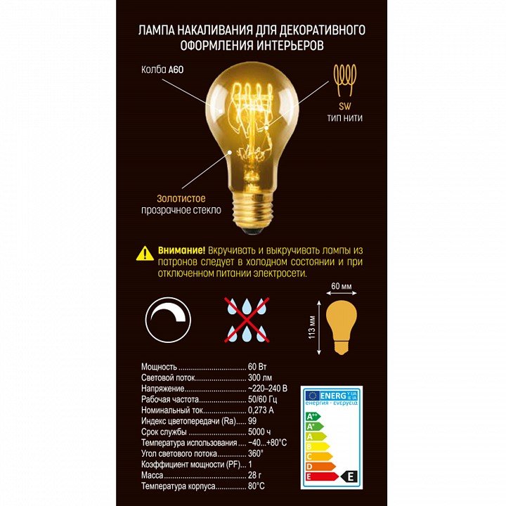 Максимальная мощность лампы, W: 60