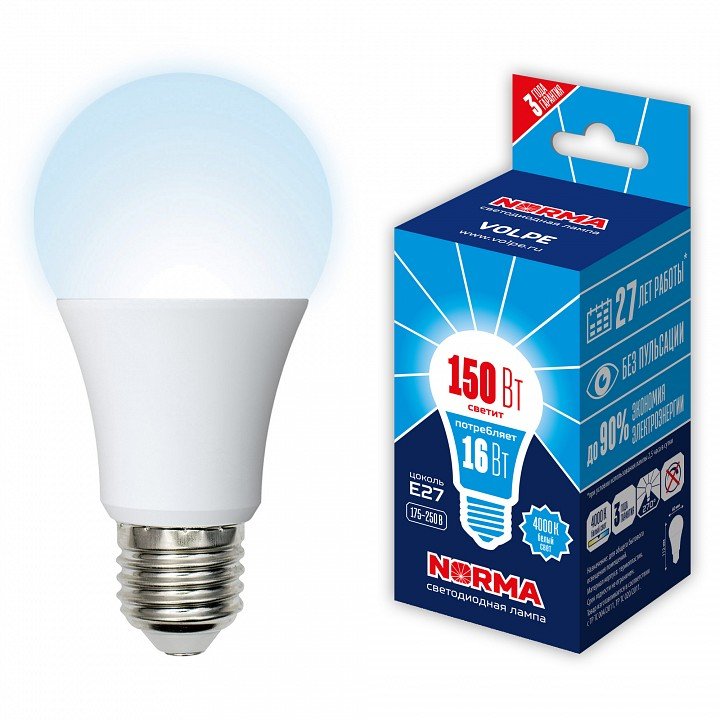 Главная Лампочки Лампочка светодиодная Volpe LED-A60-16W/NW/E27/FR/NR картон
