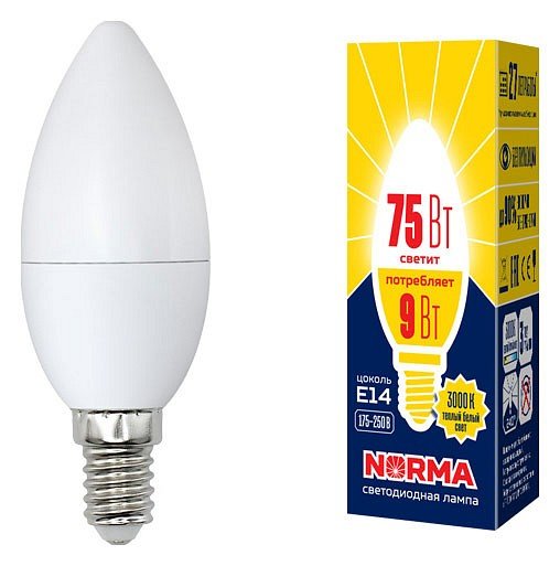 Главная Лампочки Лампочка светодиодная Volpe LED-C37-9W/WW/E14/FR/NR картон