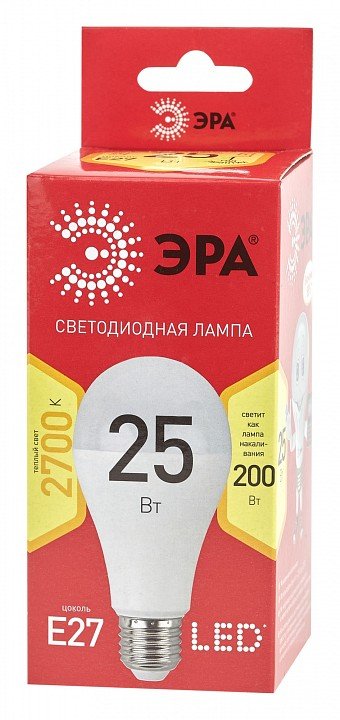 Главная Лампочки Лампа светодиодная ЭРА E27 25W 2700K матовая LED A65-25W-827-E27 R Б0048009