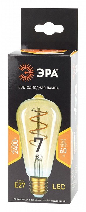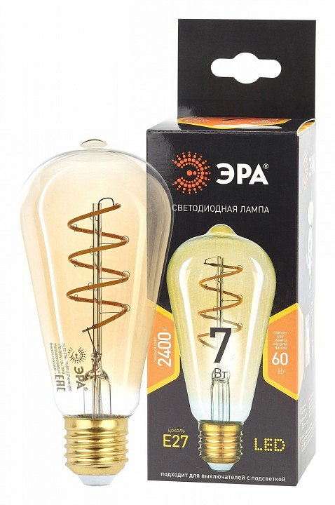 Лампа светодиодная филаментная ЭРА E27 7W 2400K прозрачная F-LED ST64-7W-824-E27 spiral gold Б0047665