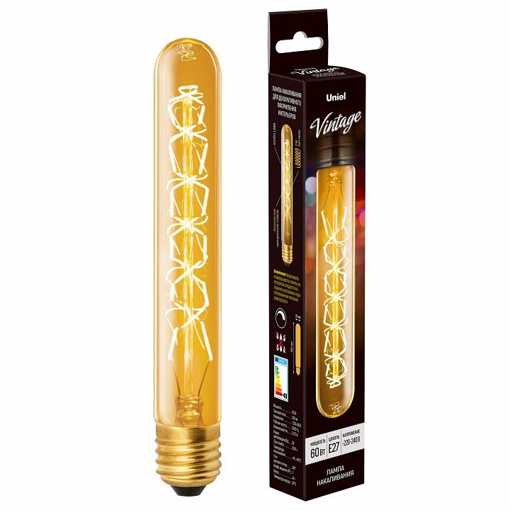 Главная Лампочки Лампа накаливания Uniel Golden E27 60Вт 2700K UL-00000484