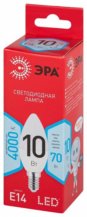 Лампа светодиодная ЭРА E14 10W 4000K матовая LED B35-10W-840-E14 R Б0049642
