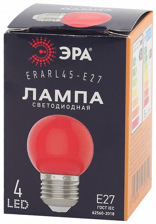 Лампа светодиодная ЭРА E27 1W 3000K красная ERARL45-E27 Б0049575