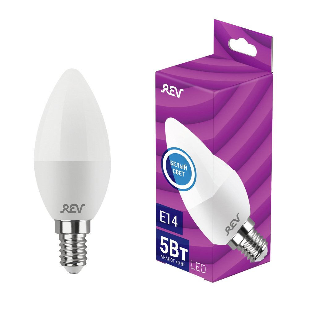 Главная Лампочки Лампа светодиодная REV C37 Е14 5W 4000K нейтральный белый свет свеча 32272 6