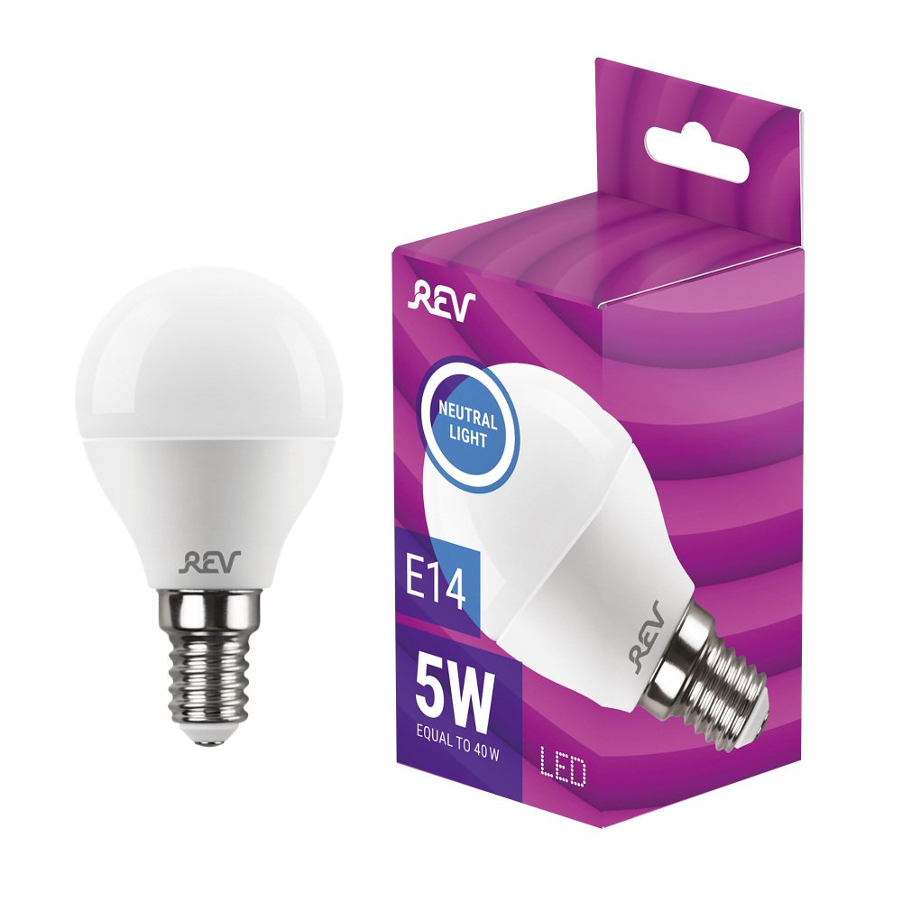 Станьте первым, кто оставит отзыв о товаре Лампа светодиодная REV G45 Е14 5W 4000K нейтральный белый свет шар 32261 0.