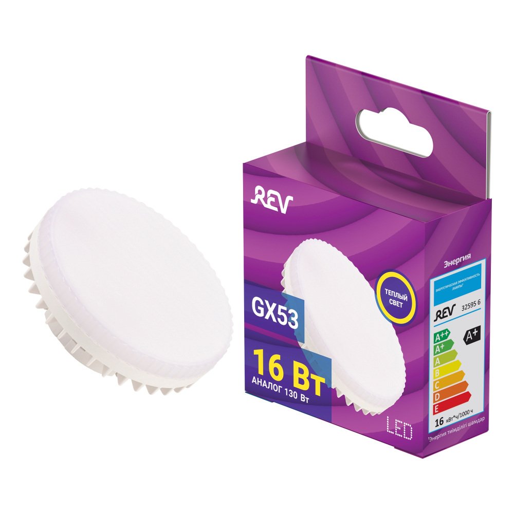 Главная Лампочки Лампа светодиодная REV GX53 16W 2700K теплый свет шар 32595 6
