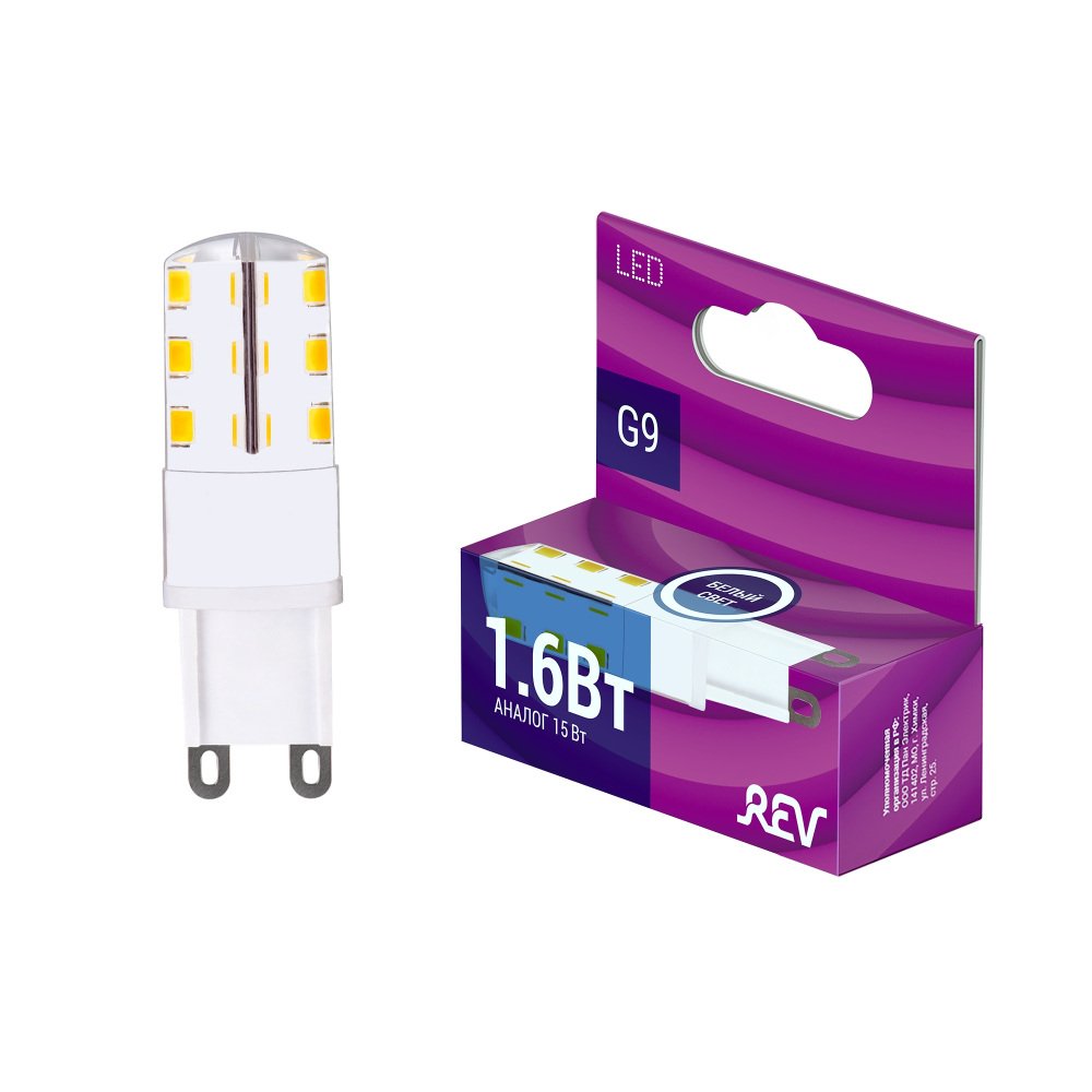 Главная Лампочки Лампа светодиодная REV JCD G9 1,6W 4000K нейтральный белый свет 220V кукуруза 32440 9