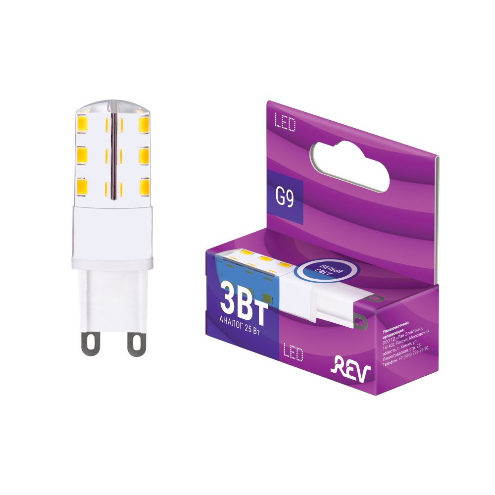 Лампа светодиодная REV JCD G9-3/4 3W 4000K нейтральный белый свет кукуруза 32368 6