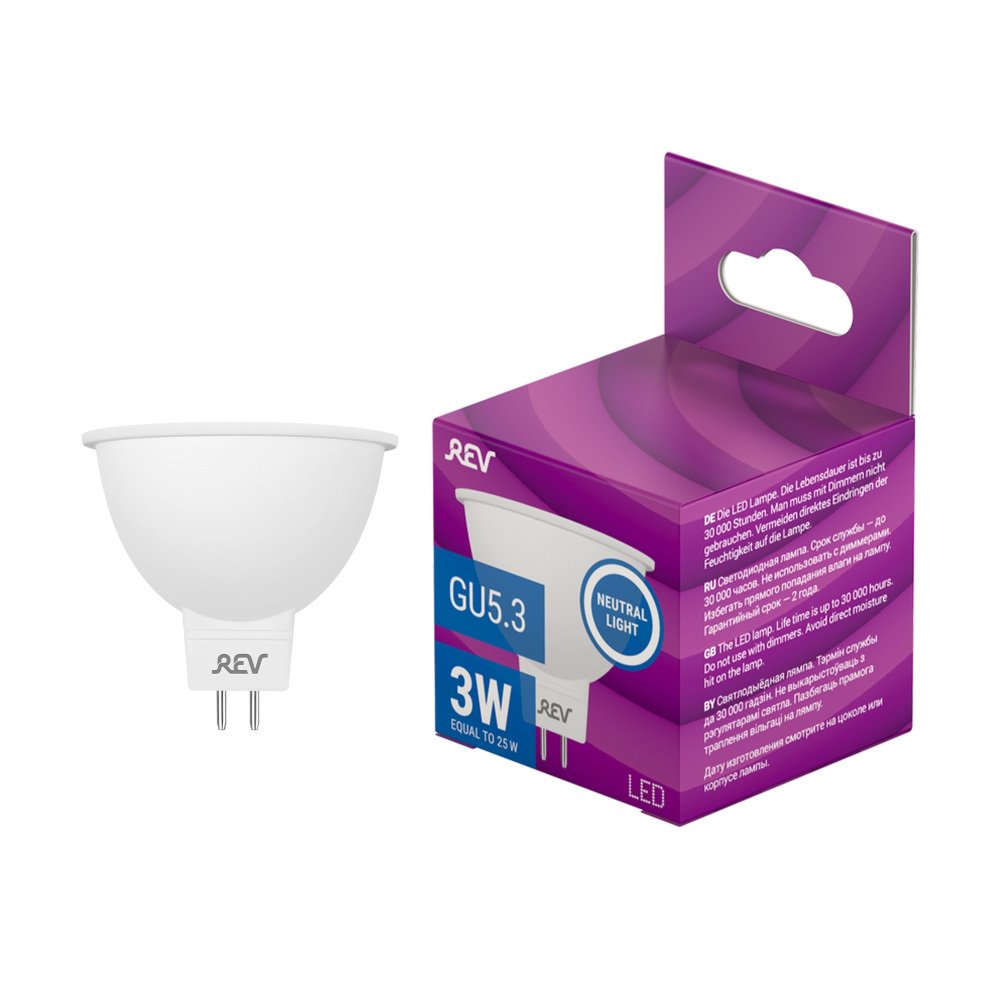 Главная Лампочки Лампа светодиодная REV MR16 GU5.3 3W 4000K дневной свет рефлектор 32321 1