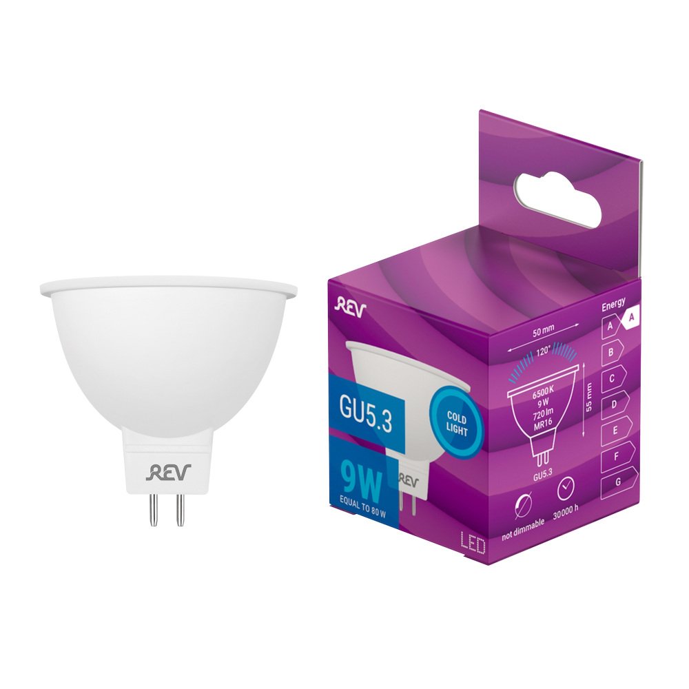Станьте первым, кто оставит отзыв о товаре Лампа светодиодная REV MR16 GU5.3 9W 6500K холодный белый свет рефлектор 32540 6.