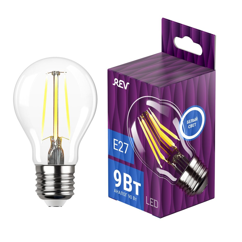 Главная Лампочки Лампа светодиодная филаментная REV Deco Premium A60 E27 9W нейтральный белый свет груша 32476 8