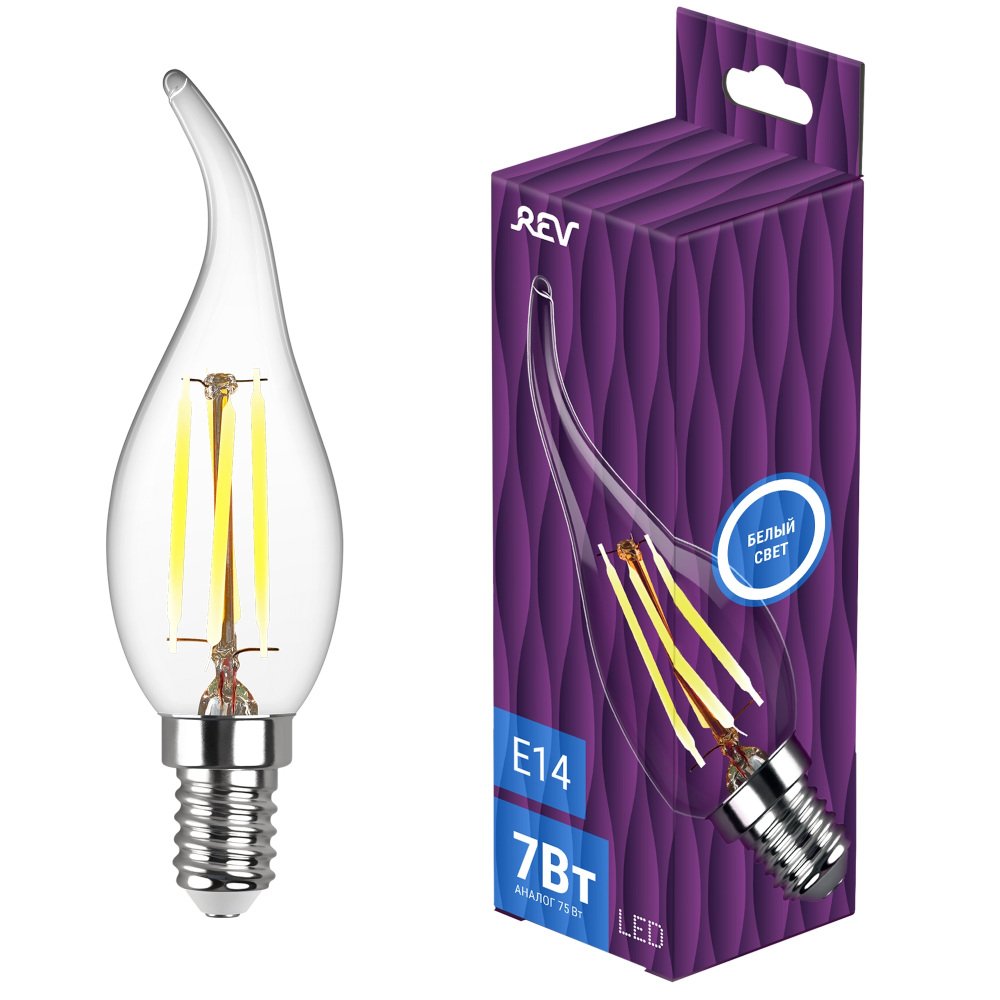 Станьте первым, кто оставит отзыв о товаре Лампа светодиодная филаментная REV FC37 E14 7W нейтральный белый свет свеча на ветру 32496 6.