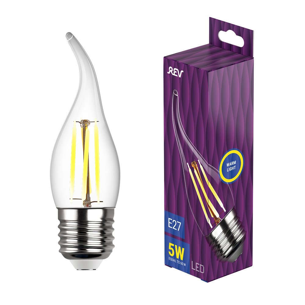 Главная Лампочки Лампа светодиодная филаментная REV FC37 E27 5W 2700K DECO Premium теплый свет свеча на ветру 32428 7