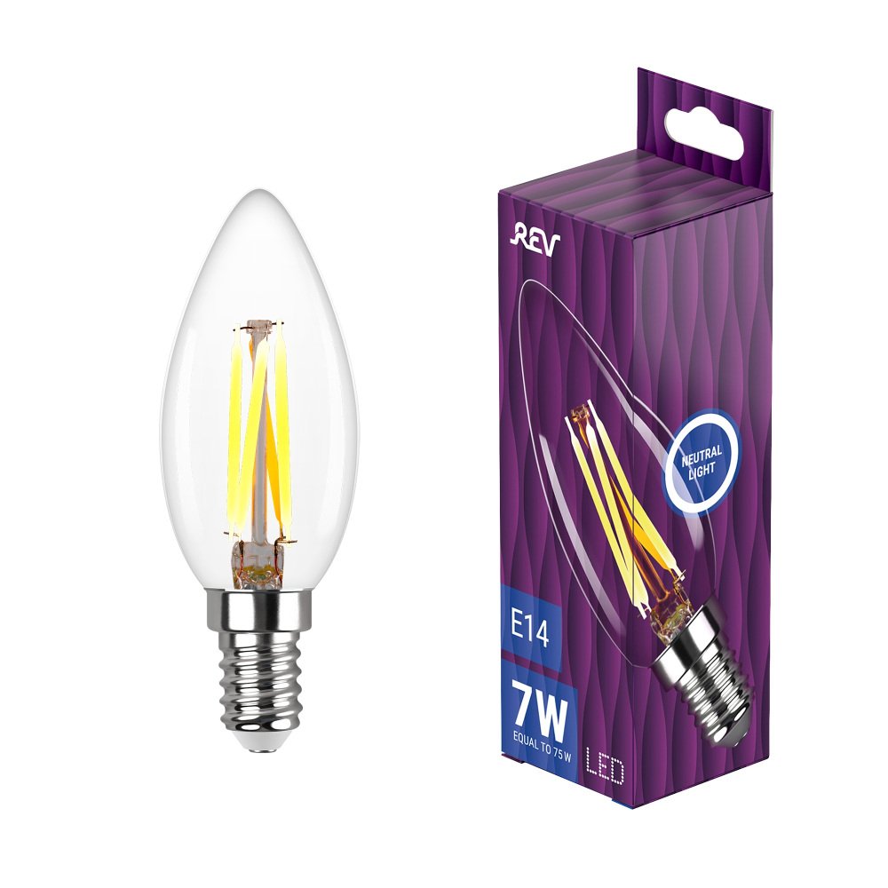 Станьте первым, кто оставит отзыв о товаре Лампа светодиодная филаментная REV С37 E14 7W DECO Premium нейтральный белый свет свеча 32487 4.