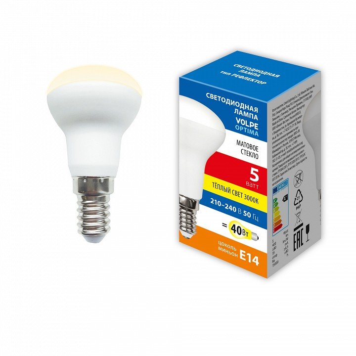 Главная Лампочки Лампа светодиодная Volpe E14 5W 3000K матовая LED-R50-5W/3000K/E14/FR/SLS UL-00008824
