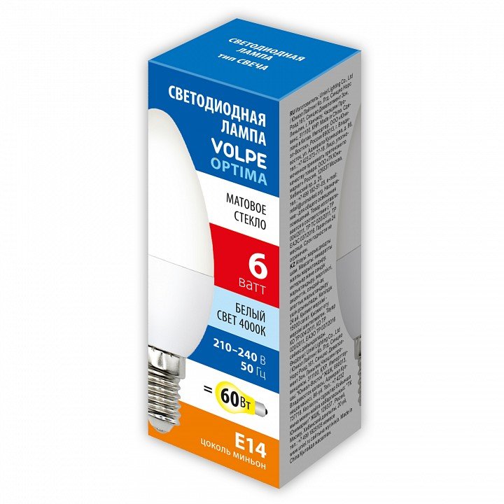 Главная Лампочки Лампа светодиодная Volpe E14 6W 4000K матовая LED-C37-6W/4000K/E14/FR/SLS UL-00008795