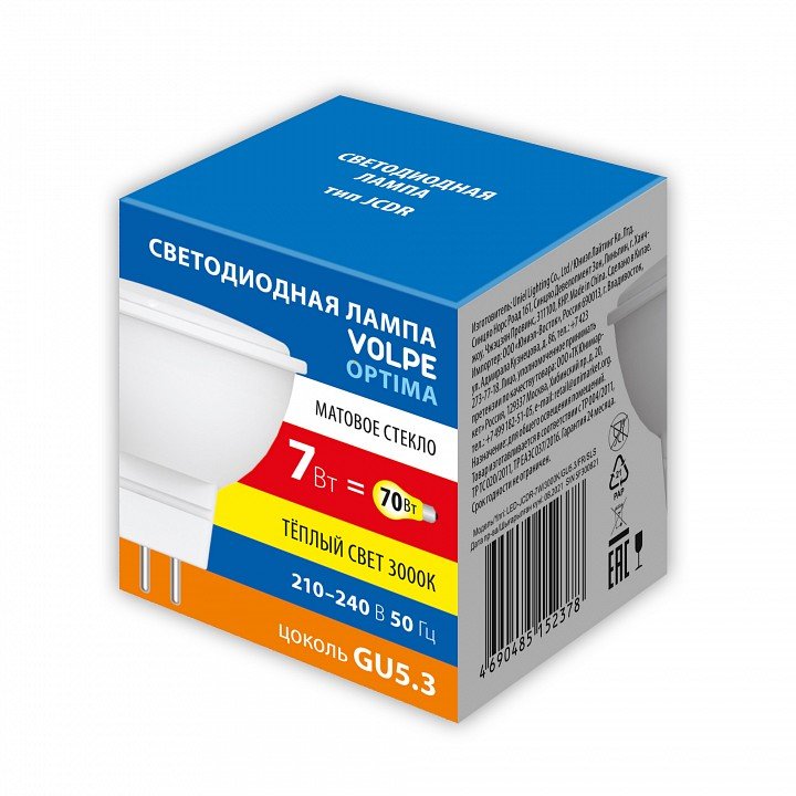 Станьте первым, кто оставит отзыв о товаре Лампа светодиодная Volpe GU5.3 7W 3000K матовая LED-JCDR-7W/3000K/GU5.3/FR/SLS UL-00008835.