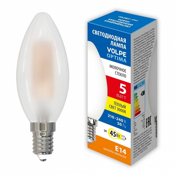 Станьте первым, кто оставит отзыв о товаре Лампа светодиодная филаментная Volpe E14 5W 3000K матовая LED-C35-5W/3000K/E14/FR/SLF UL-00008322.