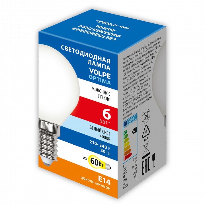 Главная Лампочки Лампа светодиодная филаментная Volpe E14 6W 4000K матовая LED-G45-6W/4000K/E14/FR/SLF UL-00008315