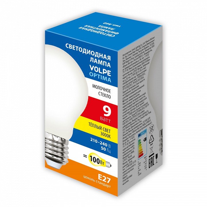 Главная Лампочки Лампа светодиодная филаментная Volpe E27 9W 3000K матовая LED-A60-9W/3000K/E27/FR/SLF UL-00008300